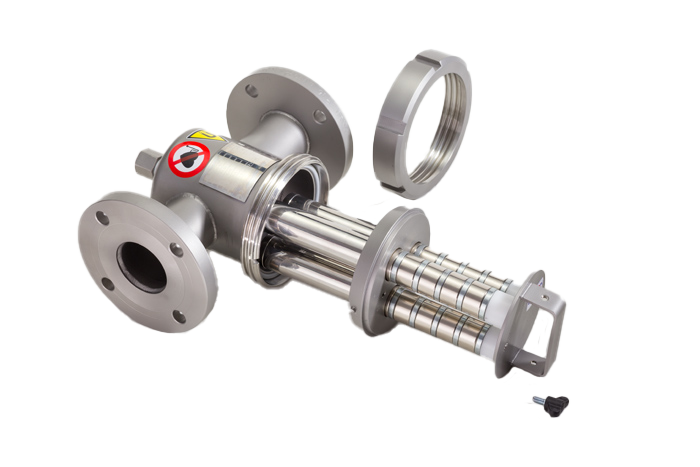 Separatorul magnetic MF – EKO este cea mai simplă versiune de separator de flux MF. Prin construcția sa, MF – EKO reiese din tipul MF – Classic, dar este simplificat în ceea ce privește construcția. Separatorul este format dintr-un corp, tuburi pe flanșă, miezuri magnetice și elemente de racordare. Tuburile de acoperire, care sunt îmbinate fix cu flanșa suport, sunt deschise dintr-o parte pentru a se putea extrage miezurile. Prin scoaterea miezurilor magnetice din tuburi, tuburile sunt demagnetizate. Deci, miezurile sunt acoperite integral numai prin introducerea lor în tuburi, adică în poziția de separare.
